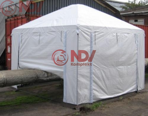 Основой укрытия служит легкий, легкомонтируемый металлический каркас. Тент укрытия выполнен из ткани ТАФ с огнеупорной пропиткой. Различные конфигурации палаток и укрытий позволяют адаптировать их для использования в сложных промышленных и пространственных условиях.