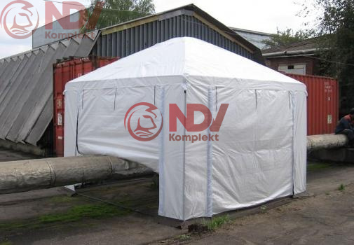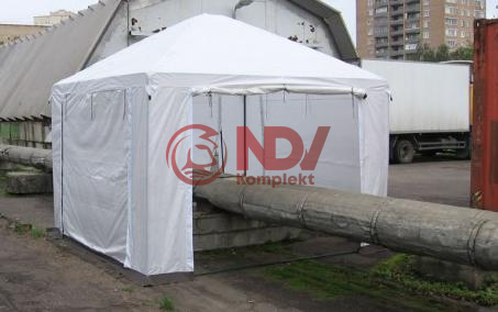 Основой укрытия служит легкий, легкомонтируемый металлический каркас. Тент укрытия выполнен из ткани ТАФ с огнеупорной пропиткой. Различные конфигурации палаток и укрытий позволяют адаптировать их для использования в сложных промышленных и пространственных условиях.